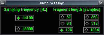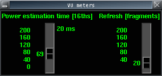 The first options for both VU meters is the power estimation time (something like falloff time) in milliseconds. The second slider determines the refresh rate. The indicator is refreshed each N fragments. Note that fast refresh may cause more dropouts.