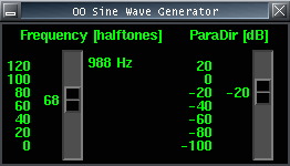 This is a sinewave generator. The frequency is in musical halftones and Hz,