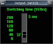 There is only one parameter, switching time constant. Use low values for instant channel switching, higher values are intended for fluent fading in/out.